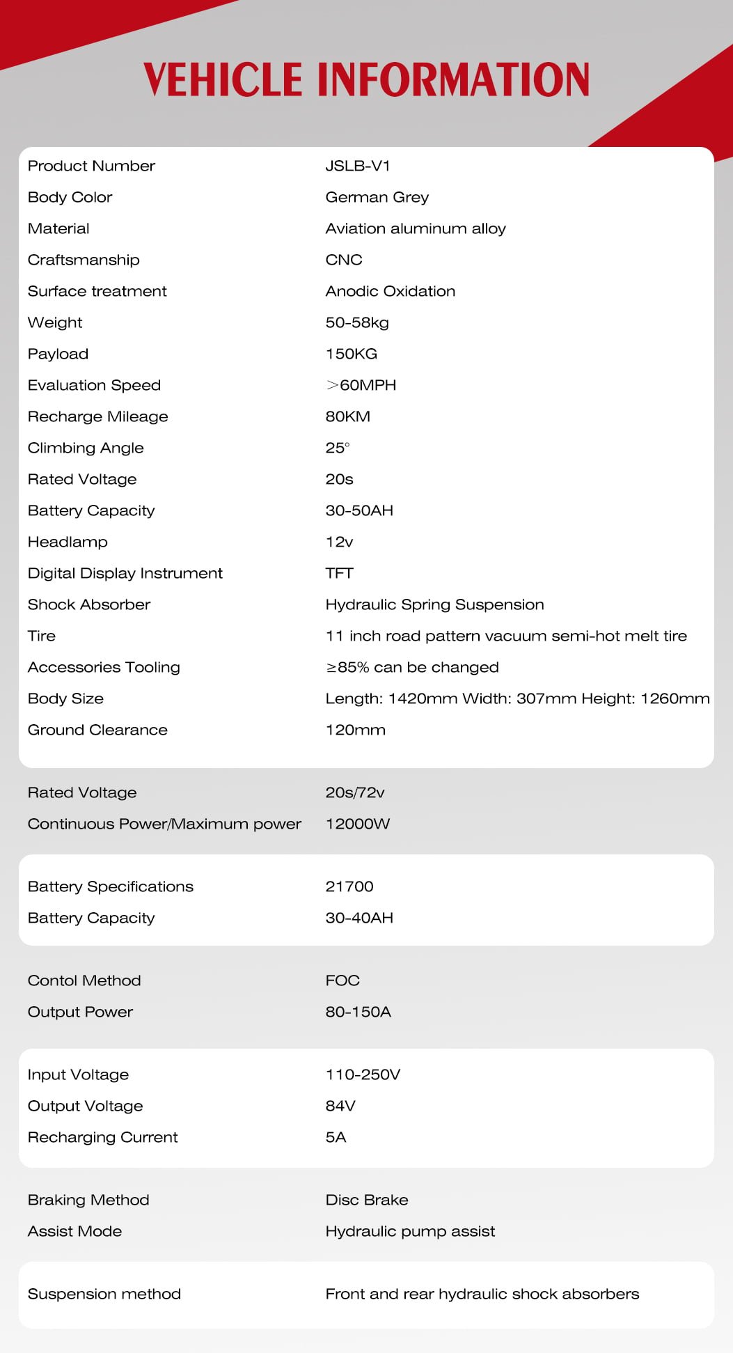 Battery capacity:72v40AH(LG battery)